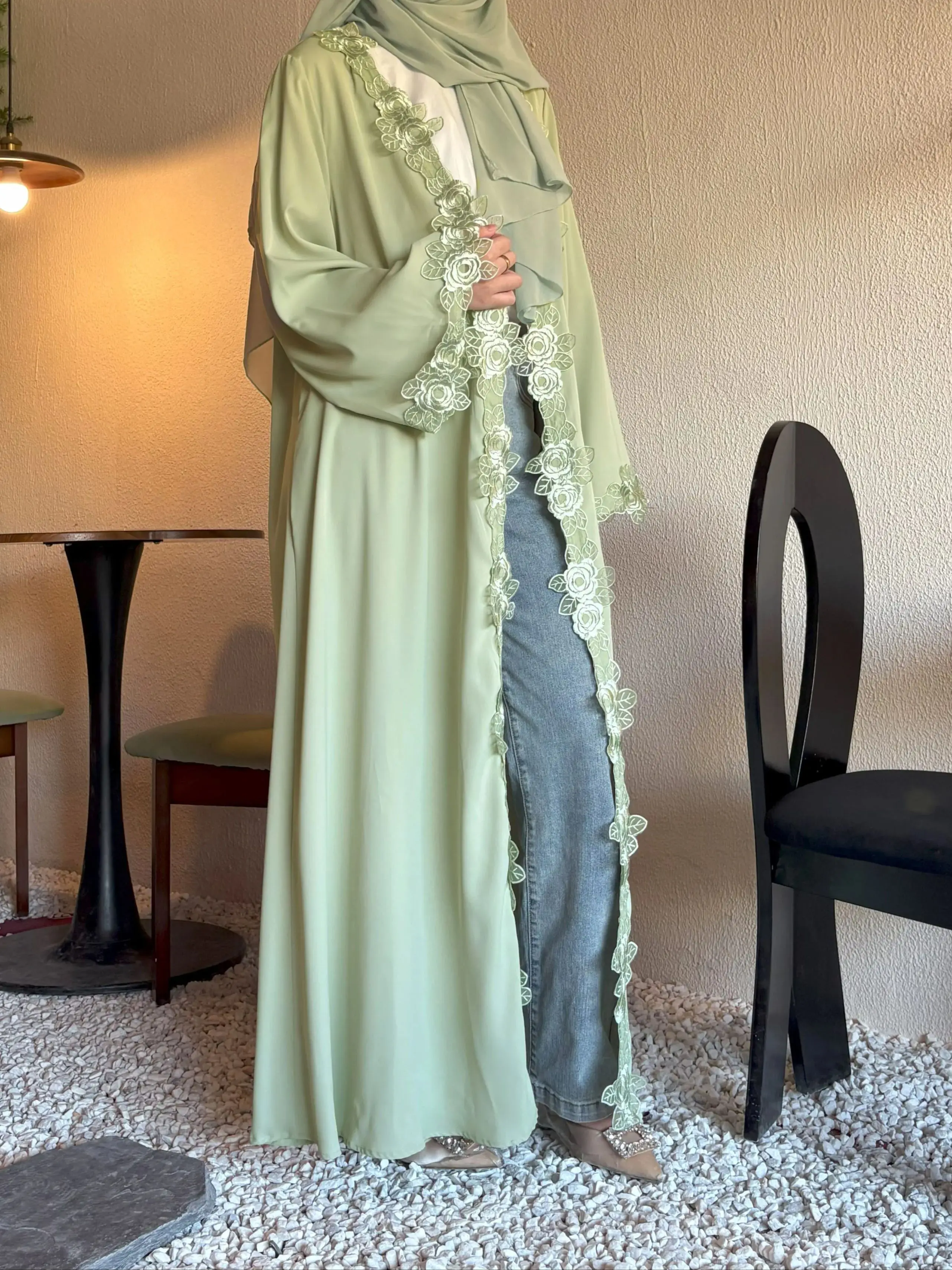 Flowy Sage Green Abaya with Hijab